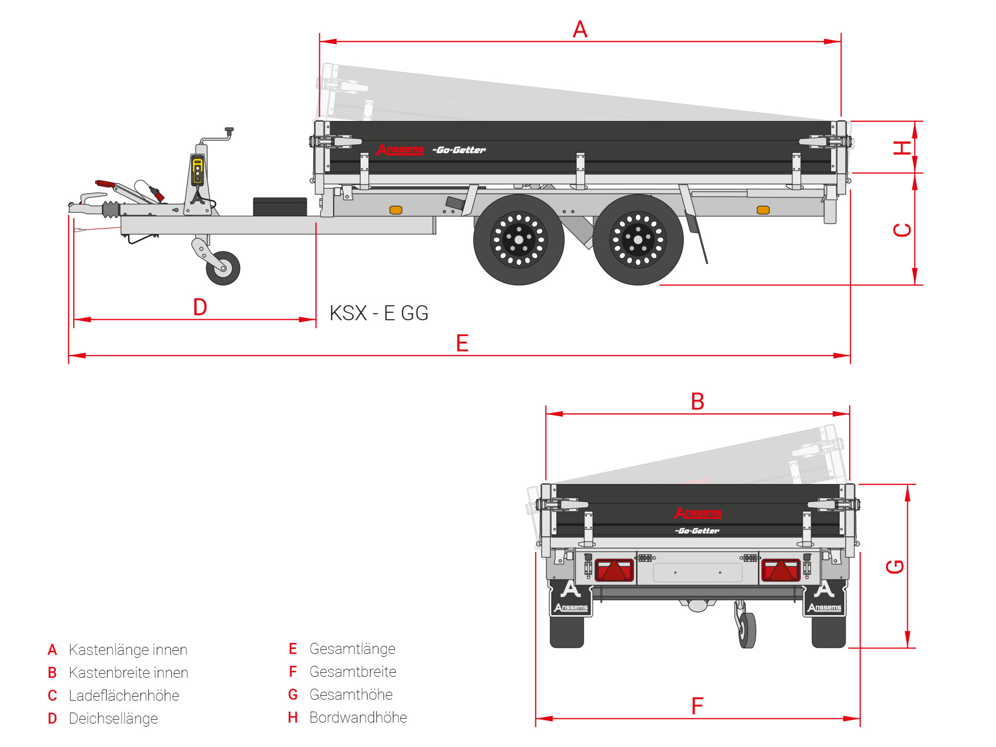 Anssems KSX-3000-E-305×178-Go-Getter, bruto laadvermogen 3000 kg.