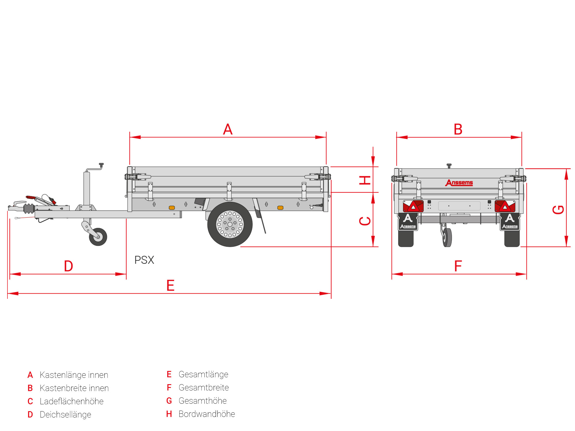 Anssems ANSSEMS-PSX-1350-251X153, bruto laadvermogen volgens specificatie.