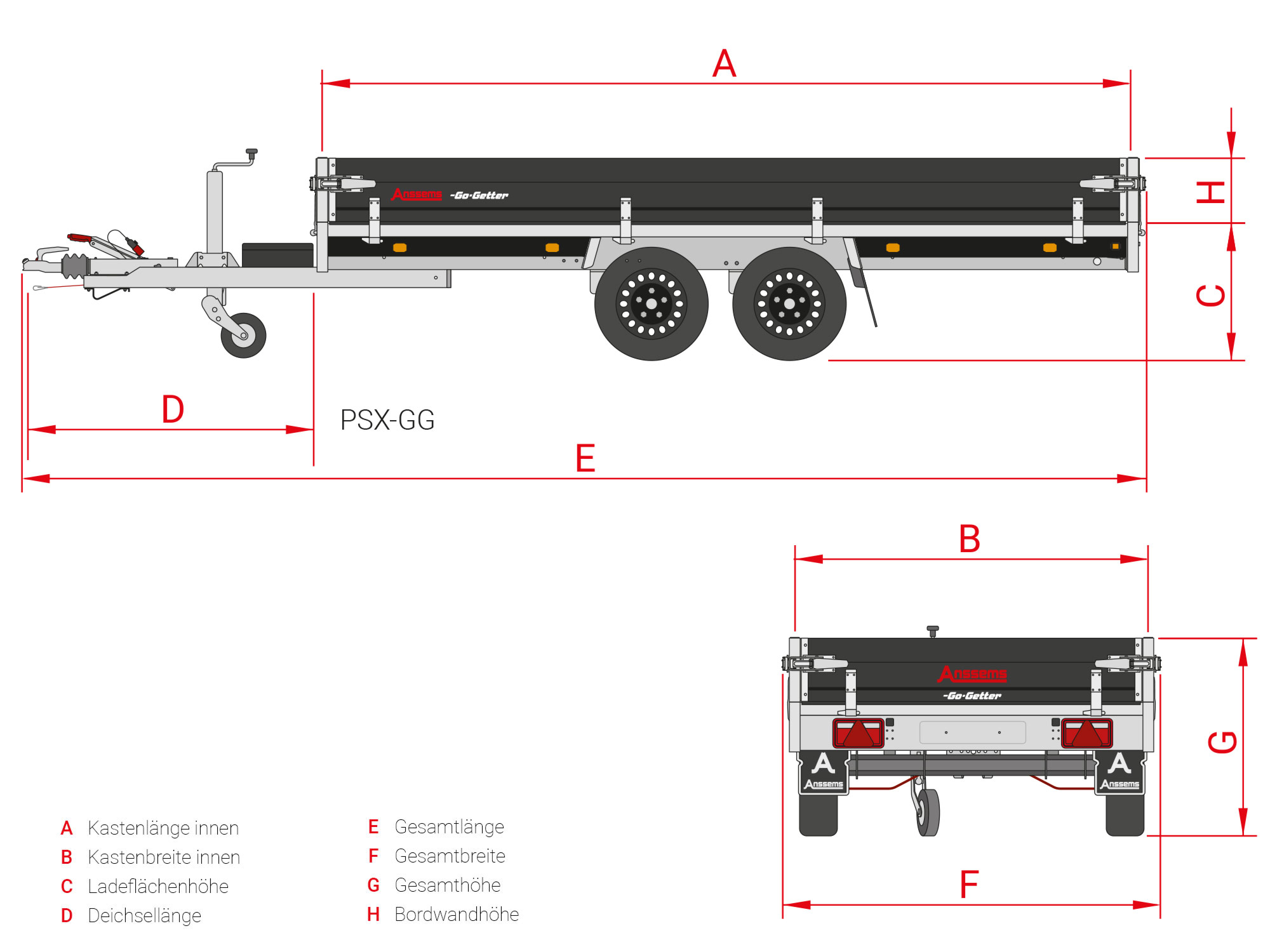 Anssems ANSSEMS-PSX-2000-405X178-GO-GETTER, bruto laadvermogen volgens specificatie.